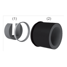 - En position murale, les bouches sont montées par simple emboîtement sur un conduit Ø 125 mm ou sur une manchette Ø 125 mm à sceller. Le joint à lèvre assure le maintien et l'étanchéïté.