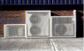 Elle permet une protection discrète et esthétique des unités extérieures contre le vandalisme et le vol. Le cadre est en aluminium peint. Les panneaux de protection sont en toile acier galvanisé perforé.